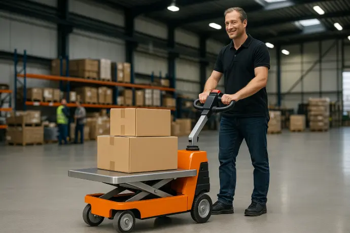 Auto-laveuses compactes, chariots électriques, tables élévatrices, diables motorisés, brouettes et tracteurs pousseurs :